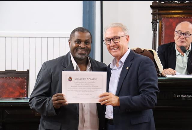 Aconteceu nesta quarta-feira (26), em cerimônia pública na Câmara Municipal de Juiz de Fora/MG, a entrega de Moção de Aplausos ao Pastor Ozéas da Silva Alvarenga. Esse reconhecimento foi oferecido ao pastor, devido a seu trabalho frente a Igreja Metodista no bairro de Bela Aurora em Muriaé/MG.